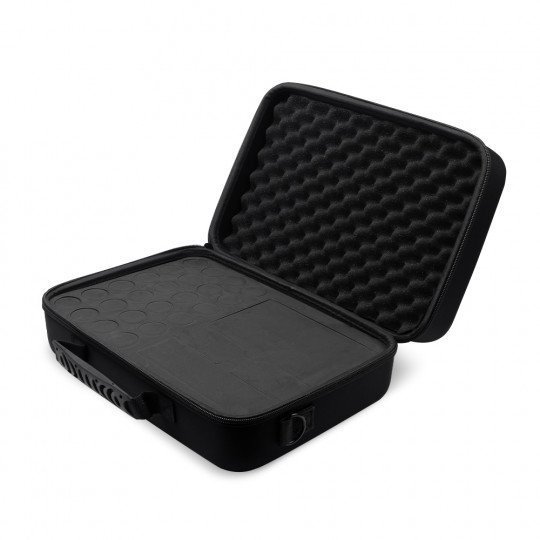 Ako često putujete ili jednostavno volite imati potrebnu opremu na jednom mjestu, onda je ova torba idealna za vas. Unatoč kompaktnoj veličini, iznimno je prostran. Unutra možete smjestiti svoj omiljeni uređaj, paket igli ili napajanja i set od 24 tinte/pigmenta s kapacitetom od 30 ml. Dobro prilagođena pjena sprječava pomicanje opreme unutar torbe, dok čvrsto kućište koje se može zaključati štiti sadržaj od oštećenja ili nepovoljnih vremenskih uvjeta. Snažna ručka i remen za nošenje na ramenu olakšavaju putovanje s vašom najvažnijom opremom za gostujuće posjete studijima ili kongresima/pmu događajima.
